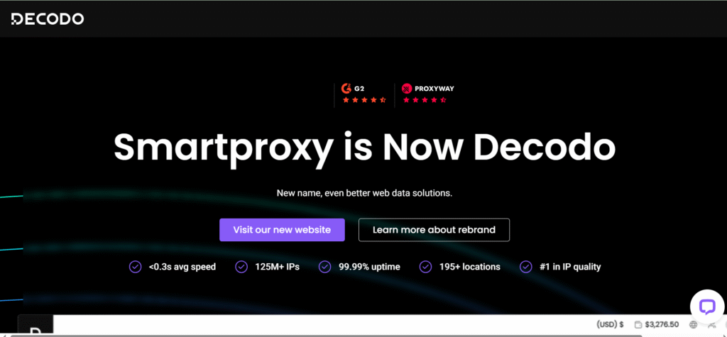 🥈 DECODO (formerly Smartproxy) – User-Friendly & Well-Rounded